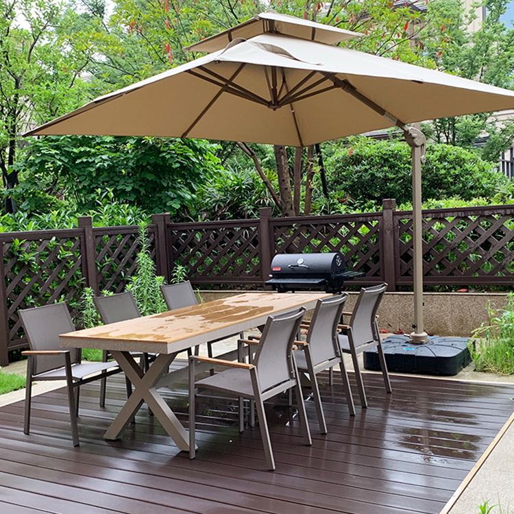Outdoor wood plastic composite table top patio furniture with umbrella